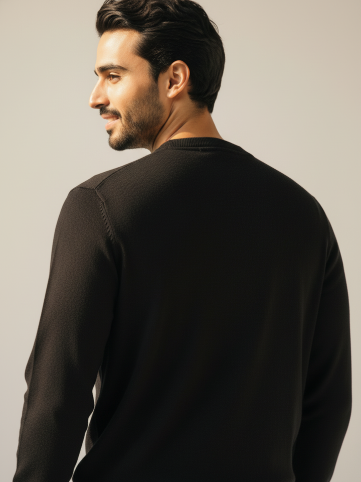 Introducing Braclo's Black Round Neck Sweater - the perfect blend of style and comfort. Made with top-quality natural fibres, this sweater is a premium addition to your wardrobe. Its classic round...