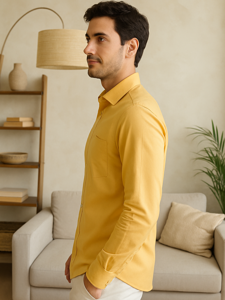 Presenting signature Cotton shirts in differentiated wardrobe-friendly colours. Made from rich Indian cotton. The Lyrca weave pattern enhances the comfort & durability of the garment. Designed to be truly versatile, they can be easily paired with chinos, denim, or joggers.