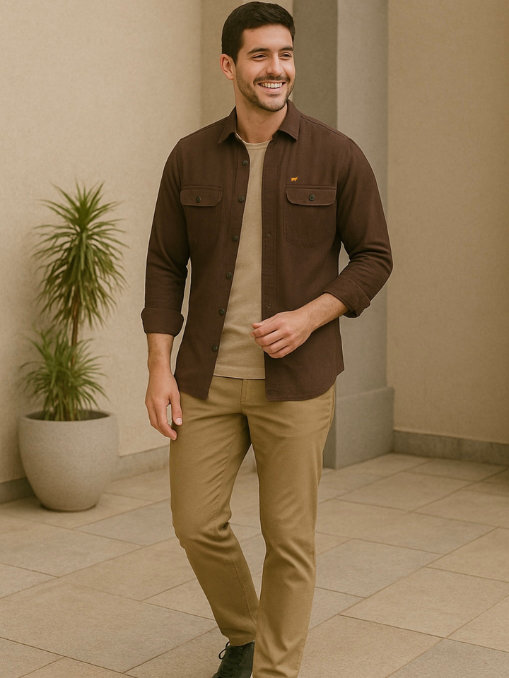 Presenting signature Cotton shirts in differentiated wardrobe-friendly colours. Made from rich Indian cotton. The Lyrca weave pattern enhances the comfort & durability of the garment. Designed to be truly versatile, they can be easily paired with chinos, denim, or joggers.