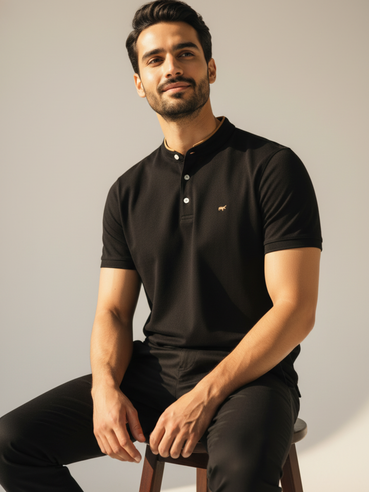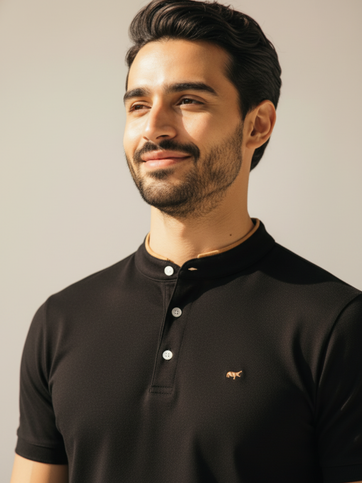 What sets this polo shirt apart is its unique mandarin collar, adding a touch of modernity to your outfit. Show off your trendsetting style with this fashionable and functional piece. It's more than just a shirt; it's a statement of your refined taste.